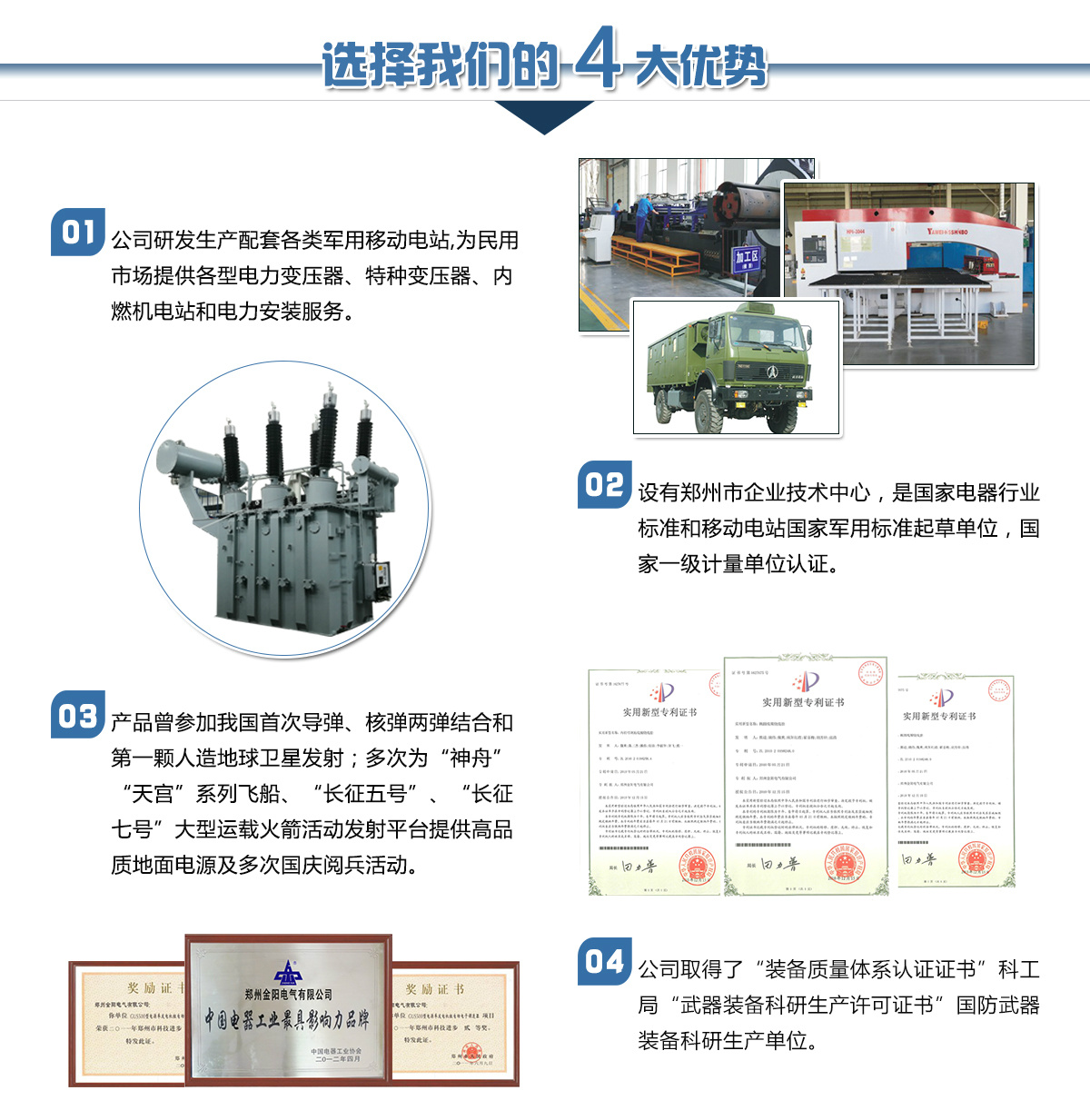 鄭州金陽電氣有限公司是由鄭州市國資委控股的國有獨(dú)資企業(yè),是原機(jī)械工業(yè)部在上世紀(jì)五十年代投資建立的移動(dòng)電站和電力變壓器生產(chǎn)企業(yè)。公司下設(shè)電站公司和變壓器公司及其它配套公司,長期以來在國內(nèi)移動(dòng)電站和電力變壓器行業(yè)占有重要位置。是河南省具備設(shè)計(jì)生產(chǎn)110kV電壓等級(jí)以上電力變壓器資質(zhì)的企業(yè),是國家經(jīng)貿(mào)委首批推薦城鄉(xiāng)電網(wǎng)建設(shè)與改造所需變壓器的生產(chǎn)企業(yè)。河南省變壓器檢測(cè)中心設(shè)在我公司。